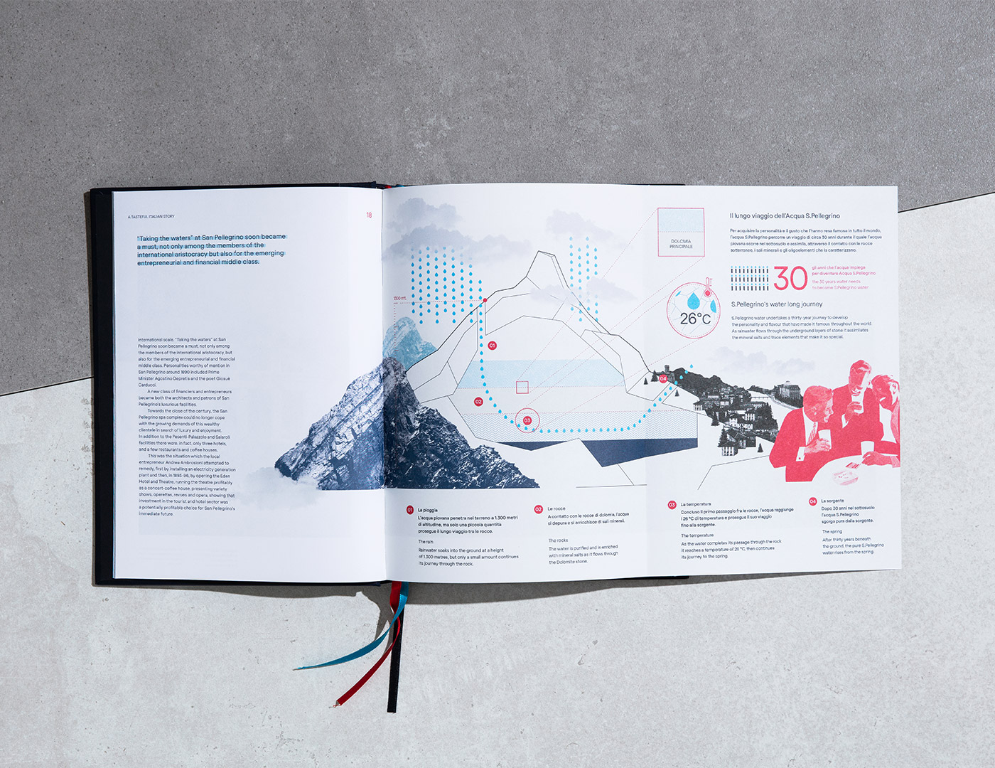 Book designed under the creative direction of YAM112003, celebrating S.Pellegrino 120 year anniversary. The book traces the story of the company since the inception in 1899 to the present days.